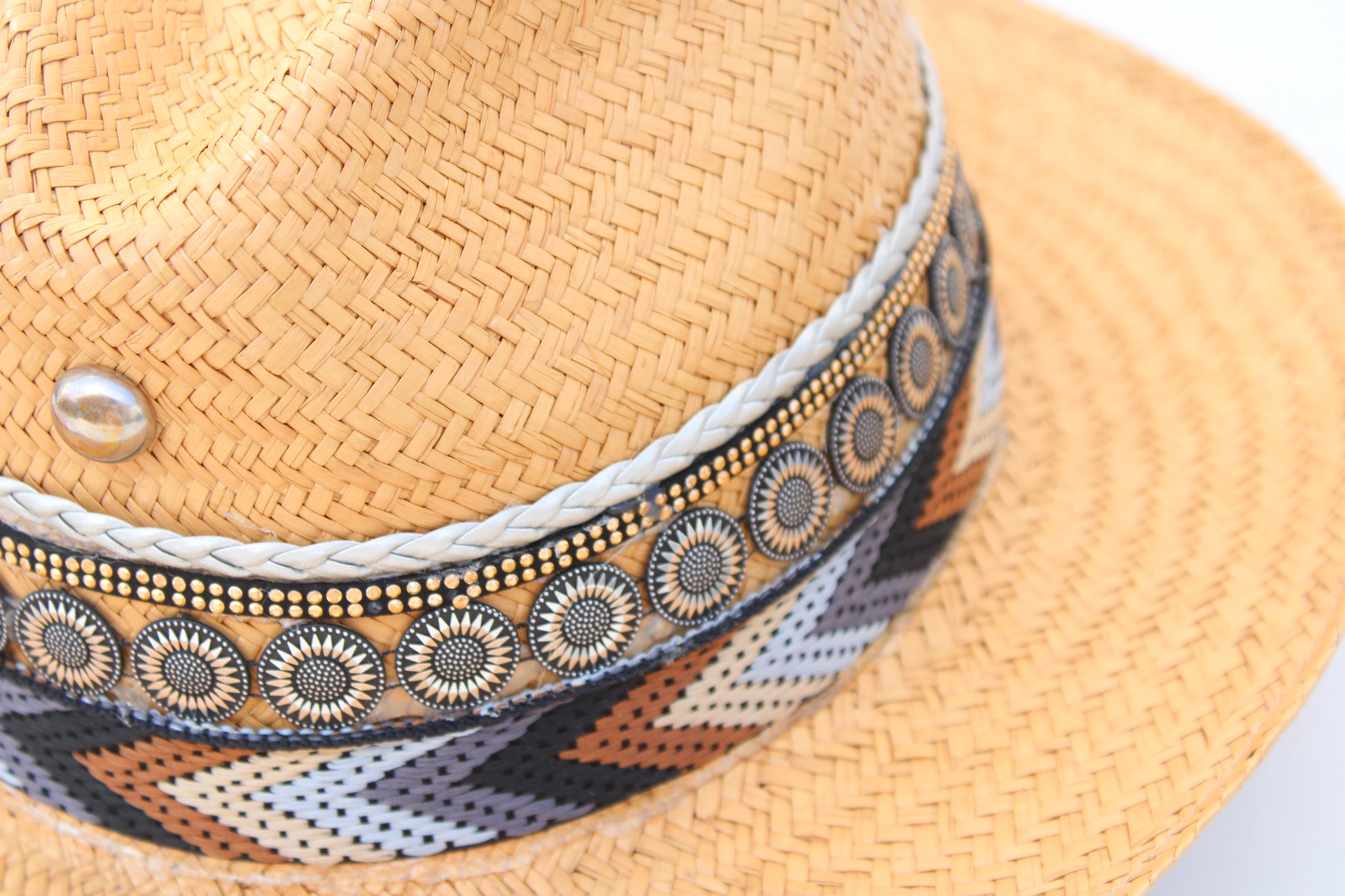 Elevate your look with our unisex fedora-style hat, handmade using natural materials and adorned with a blue-toned band and charming button. Made by native artisans, this eco-friendly and lightweight piece combines traditional skill with contemporary flair.